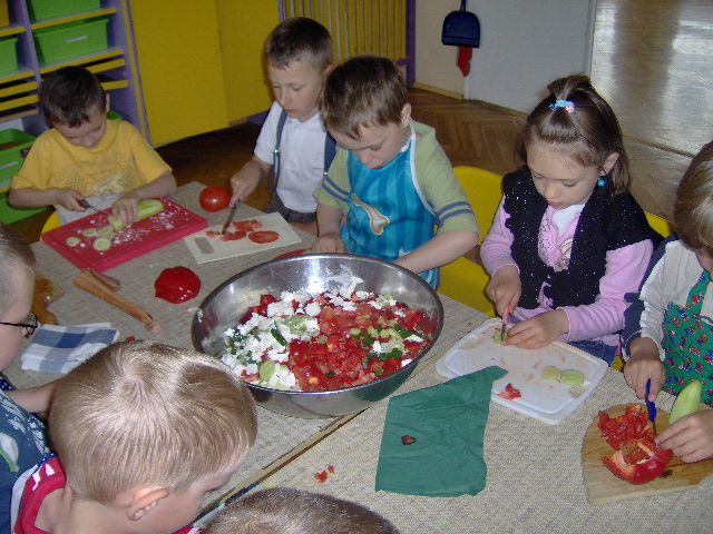 Wakacje w przedszkolu Chociaż lato w pełni i trwają wakacje to jednak część przedszkolaków spędza je w przedszkolu. W miesiącu lipcu w Przedszkolu nr 2 "Miś Uszatek" prowadzone są zajęcia dla dzieci ze wszystkich przedszkoli w gminie. Organizacja sytuacji i zajęć edukacyjnych opierała się w większości na prowadzeniu zajęć w środowisku naturalnym. Dzieci bardzo interesują się przyrodą. Z tymi zainteresowaniami wiąże się dziecięca ciekawość, chęć poznania i prowadzenia badań. Realizując założenia projektu ekologicznego dzieci uczestniczyły w zajęciach prowadzonych w ogrodzie, w lesie i na łące. Obserwowały życie motyli, mrówek, ślimaków i innych owadów. Podczas prowadzonych doświadczeń i zabaw badawczych poznawały zjawisko rozpuszczalności różnych substancji w wodzie, sprawdzały co pływa a co tonie w wodzie, prowadziły doświadczenia z wiatrem. Starszaki systematycznie pielęgnowały wysianą łąkę w ogrodzie przedszkolnym. Interesujące zajęcia odbyły się na basenie, gdzie dzieci spotkały się z ratownikiem, który zapoznał dzieci z zasadami bezpiecznej zabawy w wodzie. W grupie maluchów odbyły się zajęcia adaptacyjne dla nowoprzyjętych dzieci. Najwięcej radości miały dzieci podczas zabaw i kąpieli w przedszkolnym basenie. W przedszkolu nawet w wakacje jest radośnie i ciekawie. Zajęcia adaptacyjne W miesiącu lipcu odbyły się zajęcia adaptacyjne dla nowo przyjętych dzieci do naszego przedszkola. Dzieci i rodzice mieli okazję zapoznać się z personelem przedszkola, uczestniczyli w zajęciach w sali i w ogrodzie przedszkolnym. Nikt nie płakał, a grupie panowała radosna atmosfera. Mamy nadzieję, że we wrześniu spotkamy radosne i uśmiechnięte buzie przedszkolaków. 22.06.2009 - POŻEGNANIE ABSOLWENTÓW 6-latki zakończyły swoją edukację przedszkolną podczas pożegnalnej uroczystości. Starszaki zaprezentowały się w ostatnim programie artystycznym, a dzieci młodsze pożegnały ich wierszami i piosenkami. Pani Dyrektor podziękowała wszystkim nauczycielom i pracownikom przedszkola za współpracę. Na pamiątkę pobytu w przedszkolu wychowawcy uroczyście wręczyli dzieciom pamiątkowe dyplomy z teblem, książeczki oraz "Paszporty do kariery". Nagrodzeni dyplomami zostali także rodzice, którzy aktywnie wspierali pracę naszego przedszkola. Nie obyło się bez wzruszeń. Były życzenia, kwiaty, pamiątkowe zdjęcia i łzy rozstania. Naszym absolwentom życzymy wielu radosnych wspomnień związanych z naszym przedszkolem i samych sukcesów w szkole. 19.06.2009 - Maluchy w Palmiarni Nasze najmłodsze przedszkolaki wybrały się na wycieczkę do Palmiarni w Wałbrzychu. Dzieci podziwiały rosnące tam różne gatunki drzew, krzewów i kwitnące kwiaty. Najbardziej podobały się dzieciom rybki, żółwie idostojnie spacerujące pawie. Maluchy spisały się na medal, wróciły uśmiechnięte i pełne wrażeń. 19.06.2009 - Warsztaty ekologiczne w Myśliborzu Realizując projekt ekologiczny starszaki uczestniczyły w zajęciach warsztatowych prowadzonych przez pracowników Centrum Edukacji Ekologicznej "Salamander" w Myśliborzu. Dzieci poznały wystawę obrazów przyrodniczych, wysłuchały opowieści przyrodniczej "Las i jego mieszkańcy", wykonały malowanki na folii o tematyce ekologicznej. Po zajęciach rodzice zaprosili dzieci na pieczone kiełbaski z grilla a mama Antosia częstowała wszystkich upieczoną drożdżówką. Była to ostatnia i najlepsza wycieczka naszych starszaków. 15.06.2009 - WYCIECZKA DO ZOO Dnia 15 czerwca grupa czterolatków z rodzicami wybrała się do Wrocławskiego ZOO. Pogoda dopisała, świeciło piękne słońce. Wędrując alejkami dzieci podziwiały różnorodność gatunków zwierzęcych. Najbardziej podobały się dzieciom rybki i małpy, które popisywały się przed nimi. Podczas wycieczki dzieci miały przerwę na posiłek i mały odpoczynek. Przedszkolakom bardzo podobała się wycieczka, z pewnością za jakiś czas znów odwiedzą mieszkające w ZOO zwierzęta. Po wycieczce w przedszkolu powstała piękna wystawa prac plastycznych. 10.06.2009 - V SPARTAKIADA PRZEDSZKOLAKA Już po raz piąty nasze przedszkolaki wzięły udział w V Spartakiadzie Przedszkolaka. W siedmiu konkurencjach rywalizowały zespoły z 5 przedszkoli. Drużyny za każdą konkurencję zdobywały kolorowe płatki, które po zakończeniu turnieju utworzyły kolorowe kwiaty. W tym turnieju każda drużyna była zwycięska. Burmistrz Lech Markiewicz wręczył każdej drużynie pamiątkowy puchar i udekorował wszystkich sportowców medalami. Dzieci otrzymały także słodycze. Wszystkim zawodnikom gratulujemy. 04.06.2009 - WYCIECZKA DO OGRODU BOTANICZNEGO I MUZEUM PRZYRODY W ramach realizacji projektu ekologicznego dzieci wyjechały na wycieczkę do Ogrodu Botanicznego i Muzeum Przyrody we Wrocławiu. Przedszkolaki uczestniczyły w zajęciach warsztatowych prowadzonych przez mamę Dominiki Dorociak która jest wykładowcą na Uniwersytecie Przyrodniczym. Dzieci zachwycone były różnorodnością gatunków roślinnych okazów przyrodniczych w muzeum, większość z nich zadeklarowała że w przyszłości zostaną ekologami i przyrodnikami. 1 CZERWCA 2009 - RODZICE DZIECIOM Nasze przedszkole to optymistyczne dzieci, optymistyczny personel oraz optymistyczni rodzice. Można się było o tym przekonać 1 czerwca. Z okazji Dnia Dziecka rodzice przygotowali dzieciom niespodziankę. Przedszkole zmieniło się w bajkową krainę. Rodzice wystąpili w bajce pt "Czerwony Kapturek". Umiejętności aktorskie rodziców, piękne stroje i scenografia wzbudziły zachwyt wśród dzieci i przybyłych gości. Twarze najmłodszych pełne były wypieków, radości i uśmiechu. Aktorzy zostali nagrodzeni niekończącymi się oklaskami. W tym dniu dzieci odwiedził burmistrz Strzegomia Lech Markiewicz, jego zastępca Robert Siekaniec, Skarbnik gminy Maria Kwiatkowska oraz zastępca naczelnika oświaty Anna Góralsk
