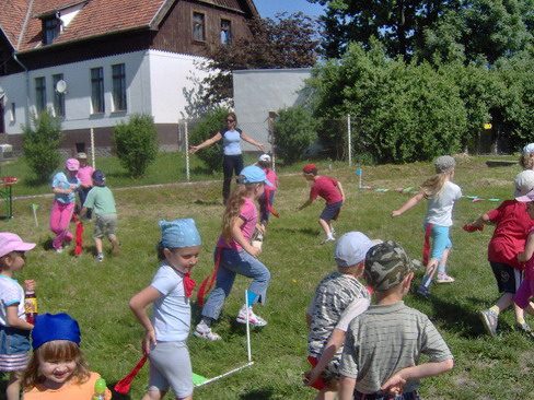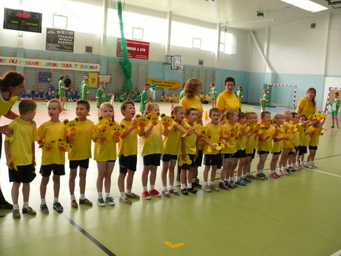 18.06.2008 - Zakończenie roku przedszkolnego Minęły 4 lata i czas do szkoły. W dniu 18 czerwca sześciolatki pożegnały przedszkole. Pani Dyrektor W. Górka podziękowała wszystkim nauczycielkom, pracownikom przedszkola i rodzicom za współpracę. Zaproszonym gościom i sponsorom wręczyła dyplomy z podziękowaniami. Były wiersze, piosenki, tańce, życzenia, kwiaty i łzy rozstania. Dzieci otrzymały "Paszporty do kariery", pamiątkowe dyplomy z tablem oraz książeczki z dedykacją. Po części oficjalnej uroczystości była niespodzianka przygotowana przez rodziców. W ogrodzie przedszkolnym był grill z kiełbaskami, ciasta, słodycze i pożegnalny tort. Życzymy naszym absolwentom samych sukcesów w szkole oraz miłych wspomnień z życia przedszkolnego. 14.06.2008 - Dni Ziemi Strzegomskiej W ramach obchodów Dni Ziemi Strzegomskiej nasze przedszkolaki zaprezentowały się w programie artystycznym uroczystości. Dzieci nagrodzone zostały gromkimi brawami za wykonanie tańców: Spacer po Atenach i Rock and roll. 12.06.2008 - IV Spartakiada Przedszkolaka 12 czerwca w hali OSiR w Strzegomiu odbyła się IV spartakiada Przedszkolaka. Nasze przedszkolaki po raz drugi odniosły zwycięstwo zdobywając Puchar Burmistrza Strzegomia. W 6 konkurencjach sportowych rywalizowały zespoły z 5 przedszkoli naszej gminy. Pan Burmistrz Lech Markiewicz udekorował wszystkich sportowców medalami. Dzieci otrzymały także słodycze. Gratulujemy zwycięstwa i życzymy dalszych sukcesów sportowych. 09.06.2008 - Święto Pluszowego Misia W dniach od 9 do 13 czerwca 2008r jak co roku obchodziliśmy święto Pluszowego Misia. Przedszkole zmieniło się w Misiolandię. Dzieci słuchały opowiadań o Misiu Uszatku, wykonywały różnorodne prace plastyczne, przygotowały wystawę swoich ukochanych misiów. Dużym wydarzeniem były zajęcia w grupie sześciolatków, które przyprowadziły panie z biblioteki: Pani Ewa Frąckowiak i Pani Ela Michaluk. Dzieci bawiły się na urodzinach Kubusia Puchatka. Podsumowaniem naszego święta był konkurs, który przygotowała i przeprowadziła Pani Danusia Zbożeń. Wspaniała organizacja i różnorodność zadań konkursowych dostarczyła dzieciom niezapomnianych przeżyć. Wszyscy uczestnicy konkursu otrzymali nagrody i pamiątkowe dyplomy. 05.06.2008 - Zabawy na basenie Korzystając z pięknej pogody w dniu 5 czerwca 2008 dzieci z grupy II, III i IV spędziły czas na basenie OSiR w Strzegomiu. Pan ratownik i instruktor prowadził ćwiczenia i zabawy w wodzie. Dzieci uczyły się zachowania w basenie pokonując strach przed wodą. Zabawy w wodzie dostarczyły dzieciom wiele radości. 01.06.2008 - Dzień Dziecka Państwo Katarzyna i Marcin Konorscy dnia 2 czerwca 2008r. zaprosili wszystkie dzieci z naszego przedszkola do Stadniny Koni w Skarżycach. Wycieczka autokarowa była wielkim przeżyciem dla dzieci. W stadninie Koni dzieci zobaczyły jak wygląda stajnia i jej mieszkańcy. Była przejażdżka na kucykach oraz pieczenie kiełbasek na ognisku. Dzieci uczestniczyły w licznych zabawach, zawodach i konkursach. Wycieczka do Skarżyc przysporzyła dzieciom wiele niezapomnianych przeżyć. 26.05.2008 - Dzień Matki W dniach 26-27 maja 2008r. obchodziliśmy w przedszkolu "Dzień Mamy". Każda grupa gościła mamy w swojej sali. Wiersze, piosenki i tańce w wykonaniu dzieci były wspaniałym prezentem dla mam za trud włożony w wychowanie swoich pociech. Odświętne stroje, wzruszające życzenia podkreśliły uroczysty charakter tego ważnego dnia. Każde dziecko obdarowało swoją mamusię własnoręcznie przygotowanym upominkiem. 12.05.2008 - Tydzień Europejski W dniach od 5 maja do 12 maja realizowaliśmy zagadnienia z zakresu edukacji europejskiej. Poszczególne grupy wiekowe poznawały wybrane kraje - członków Unii Europejskiej: Polskę, Francję, Włochy i Grecję. Dzieci poznawały historię, położenie geograficzne, kulturę danego kraju. Wiedzą jakie barwy narodowe posiadają wybrane kraje, znają ich stolice i hymn. Uczyły się tańców, zabaw ze śpiewem i powitania w różnych językach. Wykonywały albumy, pocztówki, gromadziły zdjęcia. Każda grupa przygotowała potrawy narodowe poszczególnych państw: pizzę, sałatkę grecką, francuskie ciasteczka. Uroczystym podsumowaniem Tygodnia Europejskiego była muzyczna podróż po pięknych unijnych krajach. 08.04.2008 - Wierszowanie przedszkolaków Dnia 08.04.2008r. w SCK w Strzegomiu odbyło się spotkanie z Poezją Dziecięcą. Nasze przedszkole reprezentowały 6-latki. Dzieci zaprezentowały się w wierszu J. Tuwima "Rzepka" oraz w wierszu A. Świerszczyńskiej "Zabawa w żaby i bociana" Wykonawcy otrzymali pamiątkowe dyplomy. 06.04.2008 - Wyróżnienie Sandry Baranowskiej W kwietniu przedszkole nasze wzięło udział w konkursie plastycznym "Zdrowy przedszkolak" organizowanym z okazji Dnia Pracownika Służby Zdrowia. Wyróżnienie w tym konkursie zdobyła Sandra Baranowska z grupy 6 -latków. Uroczyste wręczenie nagród odbyło się dnia 6 kwietnia 2008 w Centrum Kultury w Świdnicy. Sandra otrzymała atrakcyjne nagrody oraz dyplom. Serdecznie gratulujemy. 11.03.2008 - Wielkanocne zajączki Dnia 11.03.2008r. maluchy gościły u siebie rodzinę zajączków ze "Świątecznej Krainy". Panie z Biblioteki Publicznej - p. Ewa Frąckowiak i p. Ela Michaluk wcieliły się w postaci wesołych zajączków, które poprzez zabawę przybliżyły dzieciom tradycje wielkanocne. Z dużym zainteresowaniem dzieci przygotowywały wspólnie z zajączkami świąteczne mazurki i dekorowały wiosenne gałązki kolorowymi pisankami. 29.02.2008r - Optymistyczny Sejm Dziecięcy Dnia 29 lutego 2008r w naszym przedszkolu odbyły się I obrady Optymistycznego Sejmu Dziecięcego. Przebiegiem obrad kierowała Pani Monika Kurek. Dziecięcy Sejm obradował nad uchwaleniem "Ustawy o zachowaniu się w przedszkolu". Przedstawiciele poszczególnych grup wiekowych wcielili się w role posłów i posłanek. Przeprowadz