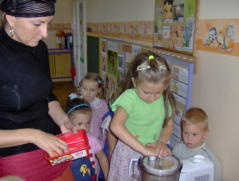 Miłym akcentem podczas finału konkursu było wręczenie przez Burmistrza Strzegomia każdemu dziecku pluszowego misia. Jak spędzamy czas w naszym przedszkolu. Rok przedszkolny we wszystkich grupach to czas wielu ciekawych, wesołych zabaw, które mają na celu harmonijny rozwój naszych dzieci. W pierwszych dniach pobytu w przedszkolu dzieci poznały przedszkole, jego tradycje i zwyczaje. W poszczególnych grupach odbywały się różnorodne ciekawe zajęcia. Maluchy z panią Marysią bawiły się w tworzenie barw przez mieszanie różnorodnych cieczy. Poznawały wygląd, walory smakowe i zdrowotne owoców i warzyw. Pani Danusia ze średniakami robiła smaczne kolorowe kanapki. Starszaki wykonywały różnorodne prace plastyczne i z warzyw. Podsumowaniem tematu "owoce i warzywa" było robienie sałatki owocowej i soku z jabłek. Na degustację starszaki zaprosiły dzieci z młodszych grup. 14.09.2007 r. – Sprzątanie świata W ramach akcji "Sprzątanie świata" dzieci z grup najstarszych sprzątały teren wokół przedszkola. W sposób praktyczny miały okazję zadbać o środowisko. Pogoda nam dopisała. Wspólnymi wysiłkami zrealizowaliśmy zamierzony cel. Dzieciom bardzo podobała się taka forma zajęć. Przedszkolaki wiedzą jak ważna jest troska o czystość naszej planety Ziemi. Witamy w naszym przedszkolu Po wakacyjnej przerwie dzieci znowu zaczęły uczęszczać do przedszkola. Pierwszy Dzień w przedszkolu to ważne wydarzenie dla dziecka i rodziców. W pokonaniu lęku przed nową sytuacją pomagały zajęcia adaptacyjne z udziałem rodziców prowadzone od miesiąca sierpnia. Miś uszatek codziennie wita dzieci zapraszając do wspólnych zabaw. Życzymy wszystkim dzieciom nauczycielom i rodzicom samych radosnych chwil spędzonych w naszym przedszkolu |